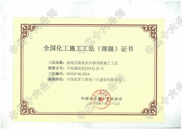 鼓泡式氧化反应器顶板施工工法