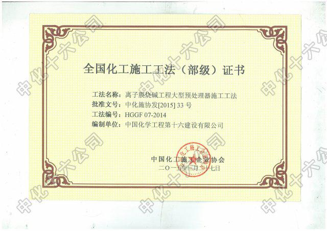 离子膜烧碱大型预处理器施工工法