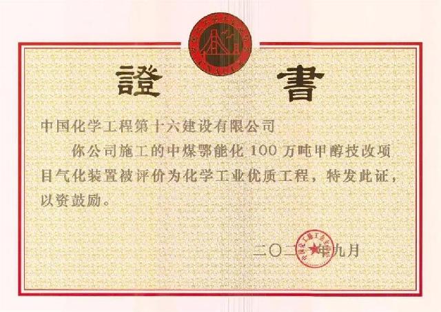 化学工业优质工程-中煤鄂能化