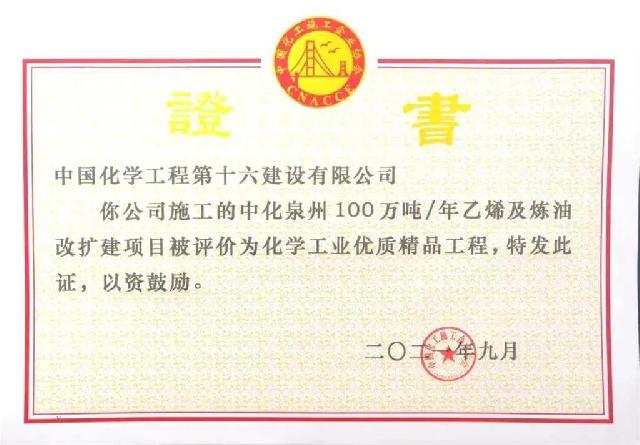 化学工业优质精品工程-中华泉州