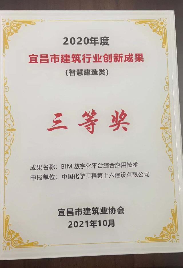 2020年度宜昌建筑行业创新成果三等奖(BIM数字化)