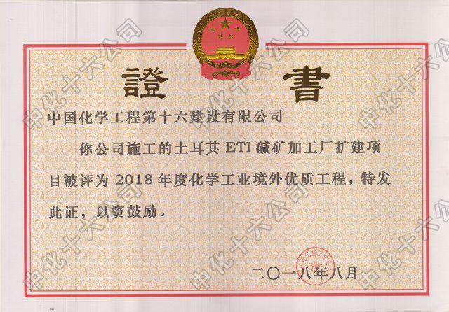 土耳其eti碱矿加工厂扩建项目化学工业境外优质工程