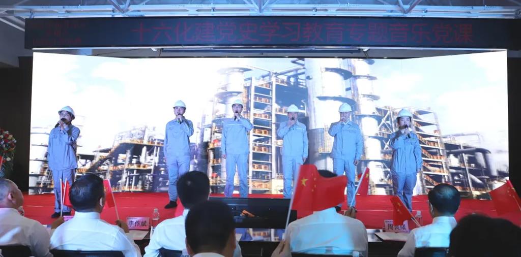 为庆祝中国共产党成立100周年,团结带领广大干部职工不忘初心听党话,坚定不移跟党走,充分展现十六化建干部职工爱党爱国、干事创业、奋勇争先的精神风貌,6月26日上午,公司举办庆祝中国共产党成立100周年暨“百年党史忆峥嵘 红歌传唱颂党恩”专题音乐党课。本次活动以机关总部现场表演和外地单位录制合唱视频为主,公司抖音官方账号全程直播。